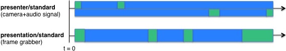 Our example capture agent can now use the addPartialTrack ingest facility to specify for each of the ingested files, at which time the content fits into the overall recording. The ingest service will automatically create the SMIL file describing how the files relate to each other and add it to the media package as flavor smil/source+partial.